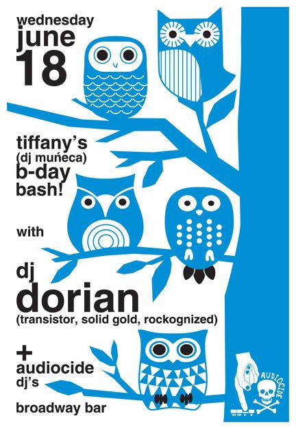dj dorian, the mastermind of transistor, rockognized, and solid gold needs no introduction to inner city party goers- from soulful classics to dance electro breaks to funky disco beats he has his finger on the pulse of the city- we're happy to bring him back to audiocide for your listening enjoyment and we'll also be celebrating the birthday of one of our alum's TIFFANY (dj muñeca)