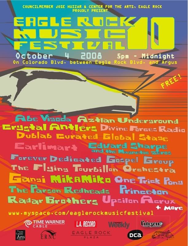 The Eagle Rock Music Festival announced their line-up this week over 50 artists including locals such as Abe Vigoda, Crystal Antlers, The Flying Tourbillion Orchestra, Le Switch, Light FM, Pizza!, Radar Brothers and Upsilon Acrux (full list here).