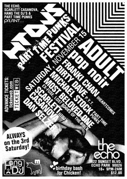 East Side shoppers seeking the offbeat need not despair this holiday season, for the gals at Ghettogloss have heard their flea-market pleas. Every weekend through December 21, Silverlake's vibrant bazaar hawks everything from crafts to collectibles, and from designer pet wear to tarot readings. Located at the intersection of Silverlake and Glendale Blvds, the market calls out to artists, record collectors, vintage shoppers, and the frugal alike. And with a portion of the proceeds donated to the construction of Silver Lake's new library, there won't be any reason to feel guilty after buying yourself that gigantic homemade ceramic ashtray, even if you don't smoke.